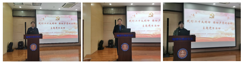 为深入落实中科院党组关于二十大精神学习宣贯工作部署要求,深刻领会地环所党委延安研修活动精神,加快推进地环所开展转型,进一步促进产学研合作,2022年11月16日上午,中科院地环所粉尘与环境研究室团支部、西安地球环境创新研究院党总支联合陕煤研究院化工所党总支在地环所岩心库大楼1103多功能厅召开“践行二十大精神  有助于产学研合作”主题党日活动。地环所党委委员于学峰出席活动并代表所党委致辞,粉尘室团支部书记黄宇、创新院党总支书记刘春卓、陕煤化工所党总支书记徐婕以及40余名党员代表参加了活动。